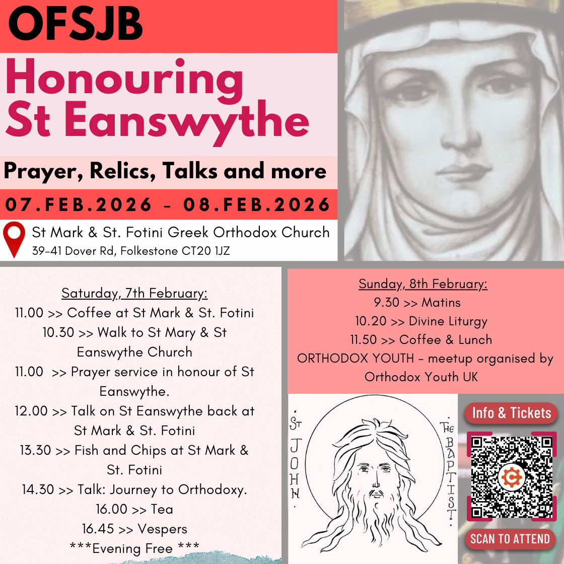 Notice to the public: The previously advertised events for the coming weekend (7th-8th February) honouring St Eanswythe and celebrating the World Day of Orthodox Youth have been postponed due to unforeseen circumstances. We sincerely apologise for any inconvenience this may cause.